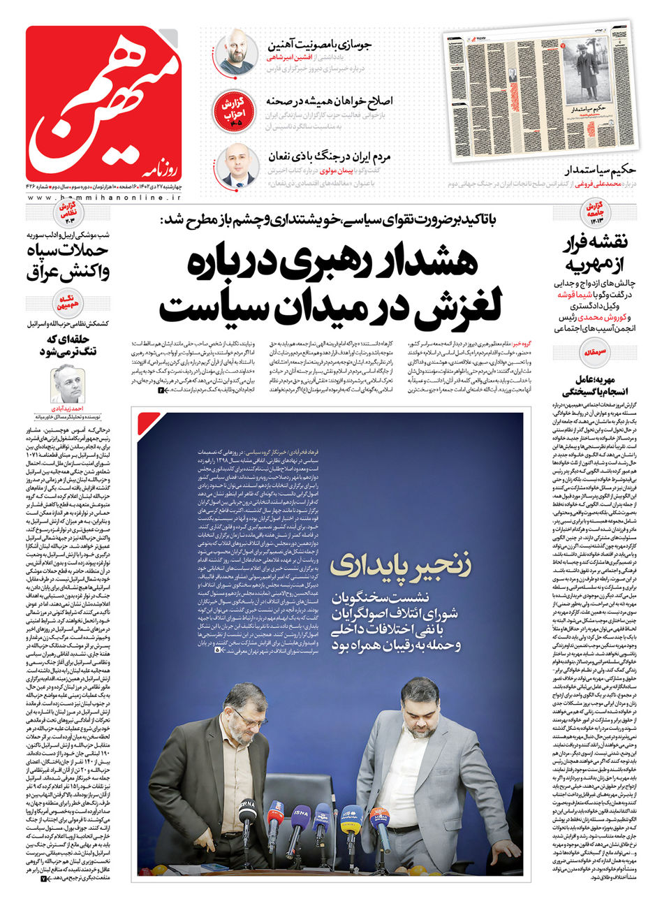 خانه | پی دی اف روزنامه | کد مطلب: ۱۱۹۰۸ ۲۷ دی ۱۴۰۲ ۰۰:۰۰ لینک کوتاه کپی شد شماره ۴۲۵ روزنامه هممیهن چهارشنبه ۲۷ دی ۱۴۰۲ به کانال تلگرام هم میهن بپیوندید روزنامه هم میهن هم میهن چهارشنبه شماره ۴۲۶ روزنامه هم میهن ۲۷ دی ۱۴۰۲
