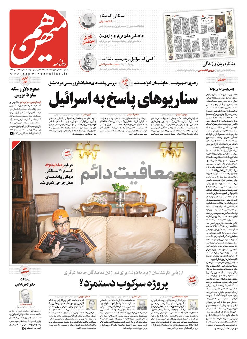 خانه | پی دی اف روزنامه | کد مطلب: ۱۴۱۸۷ ۱۵ فروردین ۱۴۰۳ ۰۱:۰۲ لینک کوتاه کپی شد شماره ۴۷۴ روزنامه هم میهن چهارشنبه ۱۴۰۳/۰۱/۱۵ به کانال تلگرام هم میهن بپیوندید شماره 474 روزنامه هممیهن روزنامه هممیهن پیدیاف روزنامه هممیهن
