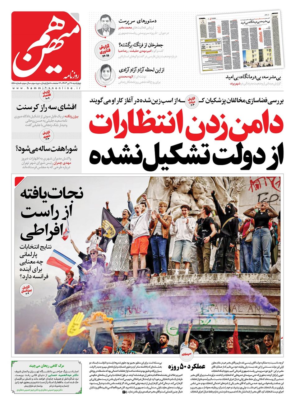خانه | پی دی اف روزنامه | کد مطلب: ۱۸۲۴۹ ۲۰ تیر ۱۴۰۳ ۰۱:۰۰ لینک کوتاه کپی شد شماره ۵۵۰ روزنامه هممیهن چهارشنبه ۱۴۰۳/۰۴/۲۰ به کانال تلگرام هم میهن بپیوندید روزنامه هم میهن روزنامه هممیهن پیدیاف روزنامه هممیهن شماره 550 روزنامه هممیهن