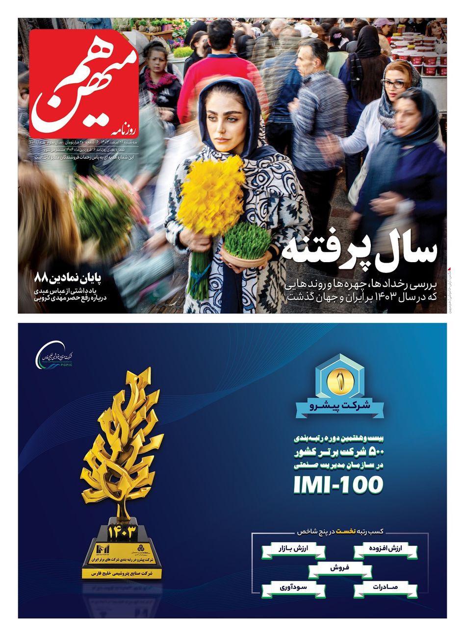 جهت خرید روزنامه هم‌میهن سه‌شنبه 1403/12/28 به لینک زیر مراجعه کنید. خرید روزنامه هم‌میهن از سایت جار