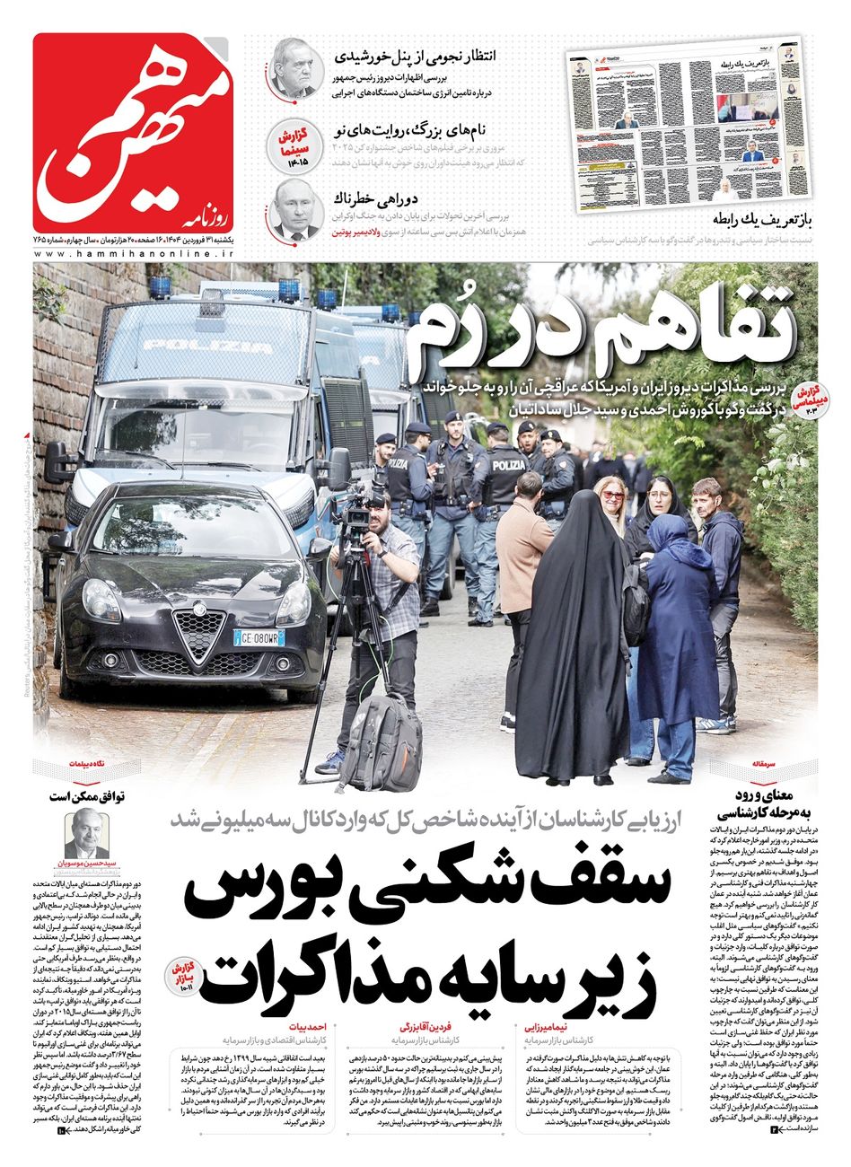 جهت خرید روزنامه هم‌میهن یکشنبه 1404/01/31 به لینک زیر مراجعه کنید. خرید روزنامه هم‌میهن از سایت جار