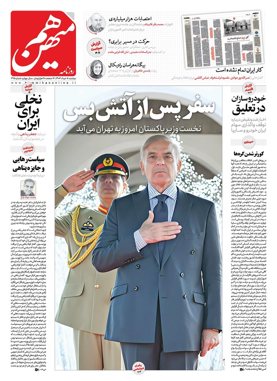 جهت خرید روزنامه هم‌میهن دوشنبه 1404/03/05 به لینک زیر مراجعه کنید. خرید روزنامه هم‌میهن از سایت جار