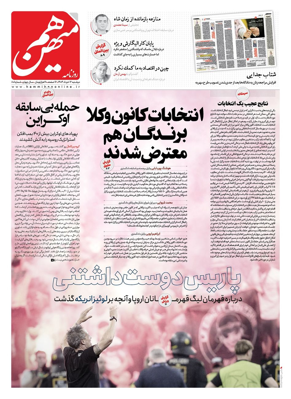 جهت خرید روزنامه هم‌میهن دوشنبه 1404/03/12 به لینک زیر مراجعه کنید. خرید روزنامه هم‌میهن از سایت جار