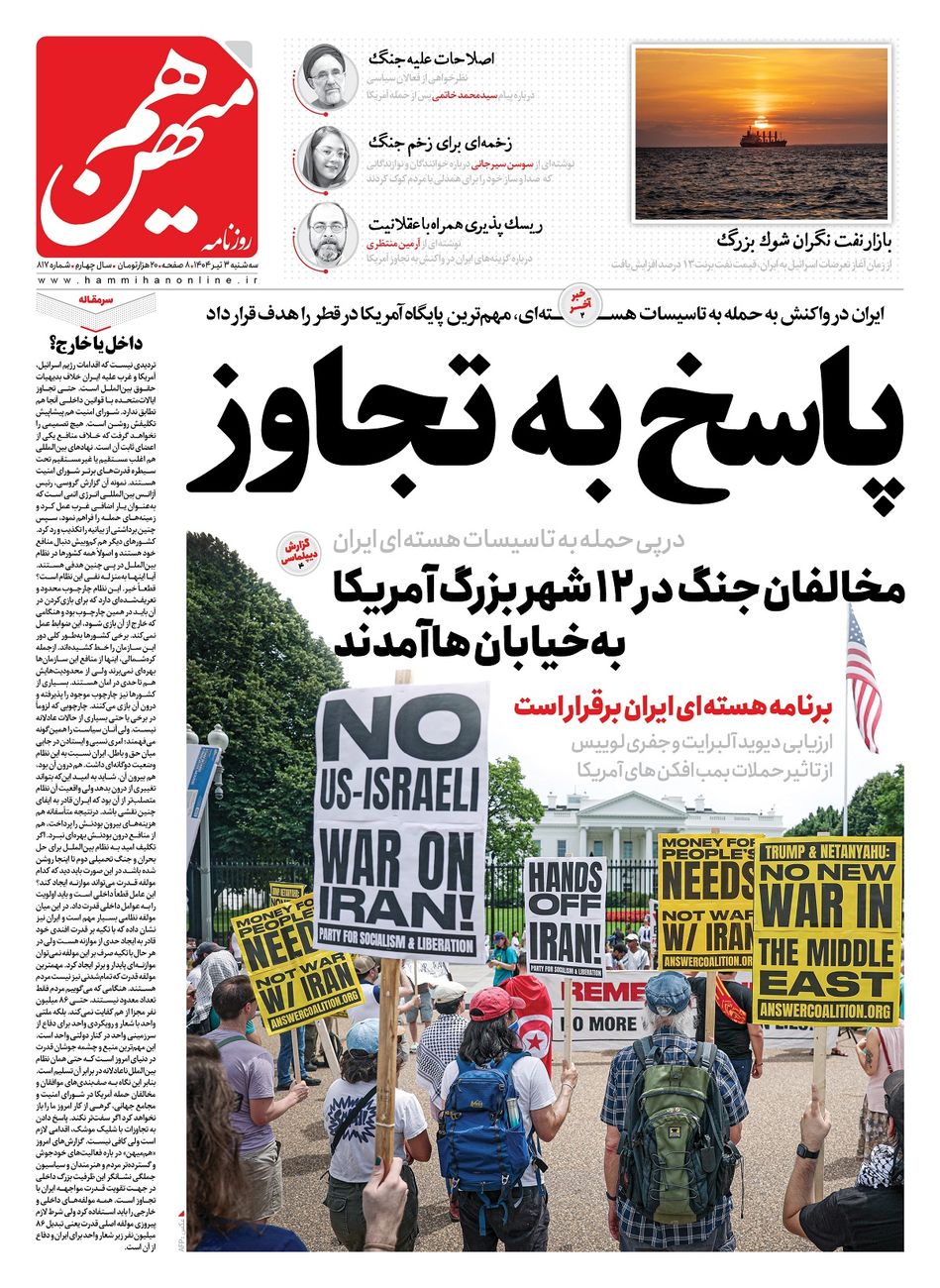 جهت خرید روزنامه هم‌میهن سه‌شنبه 1404/04/03 به لینک زیر مراجعه کنید. خرید روزنامه هم‌میهن از سایت جار