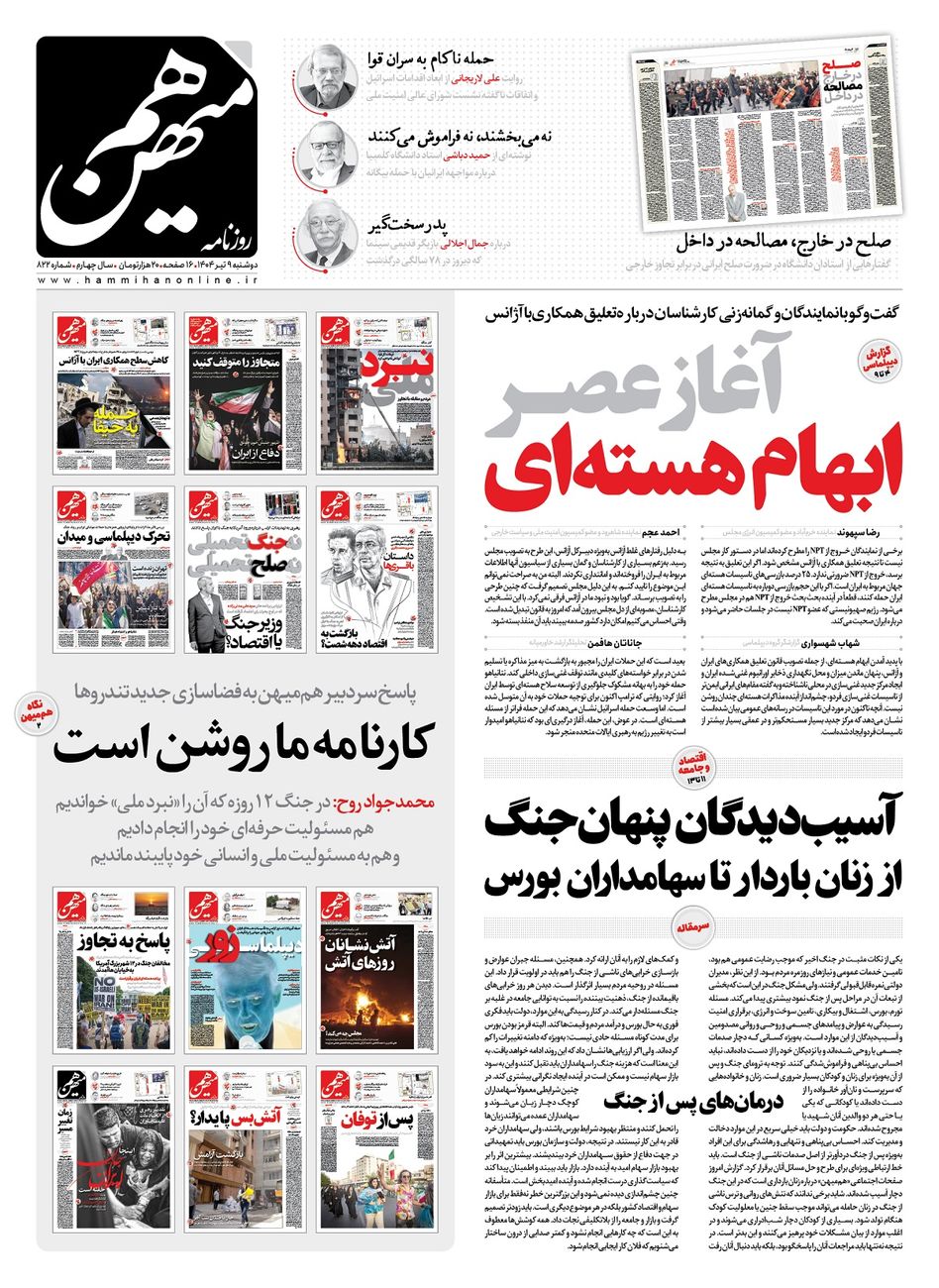 جهت خرید روزنامه هم‌میهن دوشنبه 1404/04/09 به لینک زیر مراجعه کنید. خرید روزنامه هم‌میهن از سایت جار