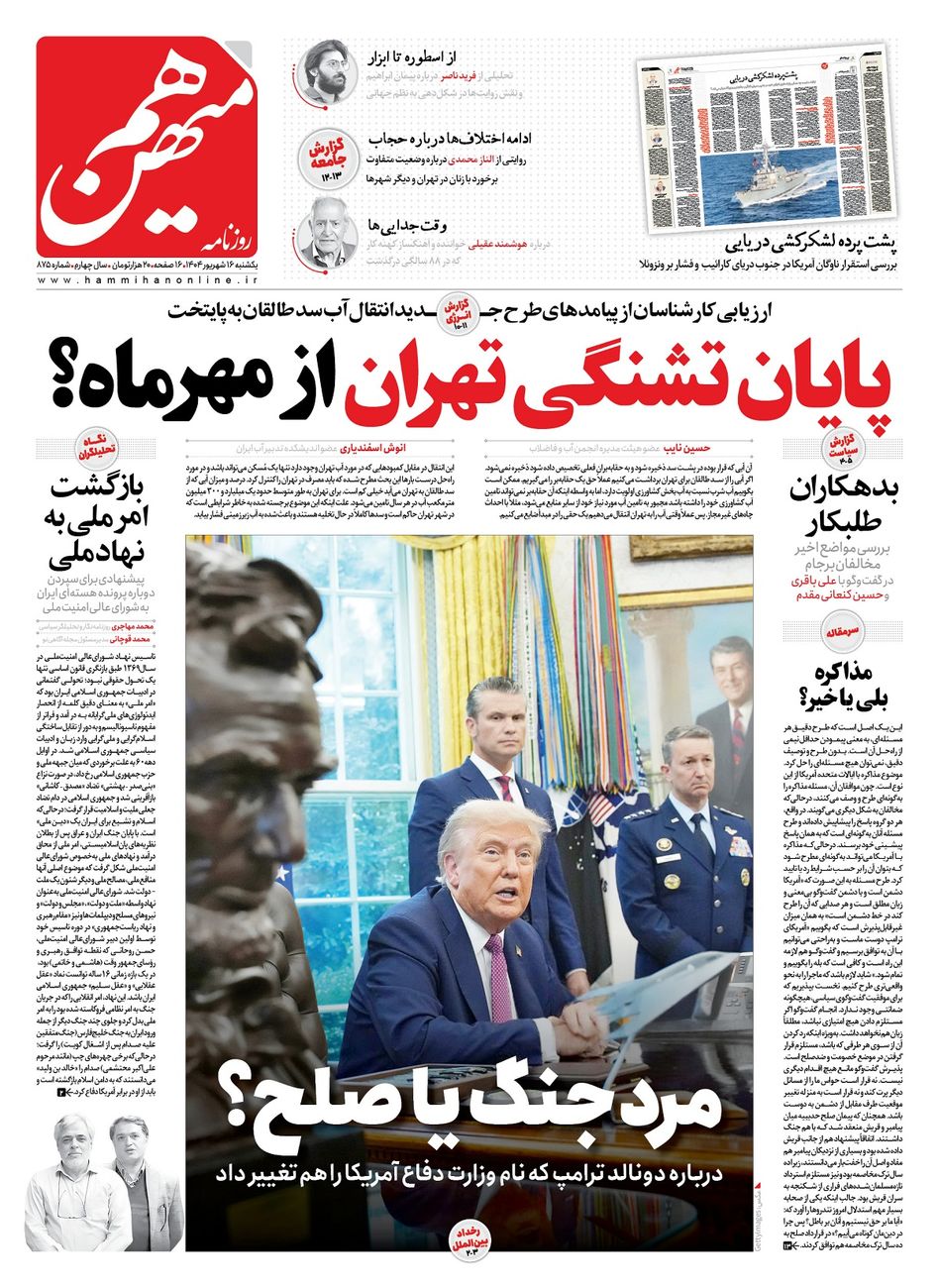 جهت خرید روزنامه هم‌میهن یکشنبه 1404/06/16 به لینک زیر مراجعه کنید. خرید روزنامه هم‌میهن از سایت جار