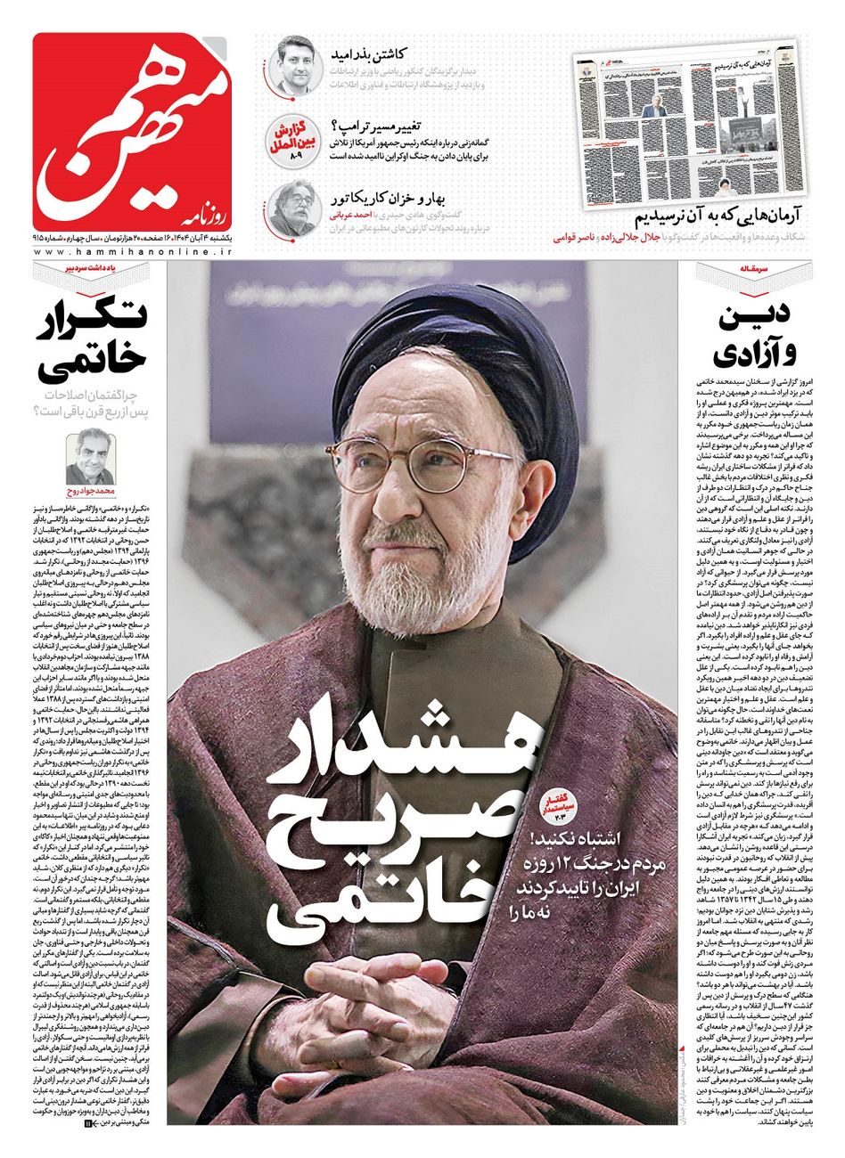جهت خرید روزنامه هم‌میهن یکشنبه 1404/08/04 به لینک زیر مراجعه کنید. خرید روزنامه هم‌میهن از سایت جار
