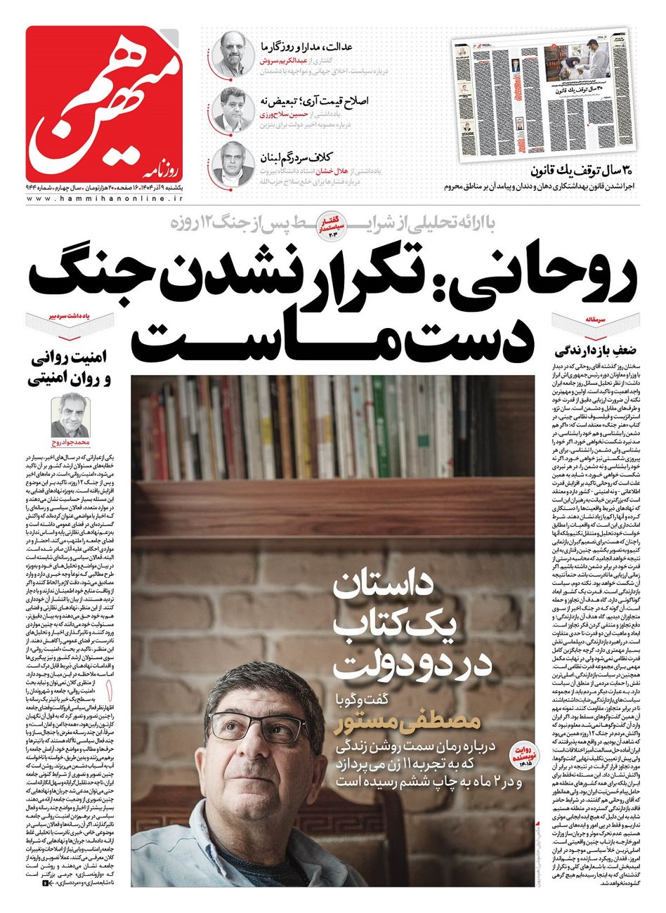 جهت خرید روزنامه هم‌میهن یکشنبه 1404/09/09 به لینک زیر مراجعه کنید. خرید روزنامه هم‌میهن از سایت جار