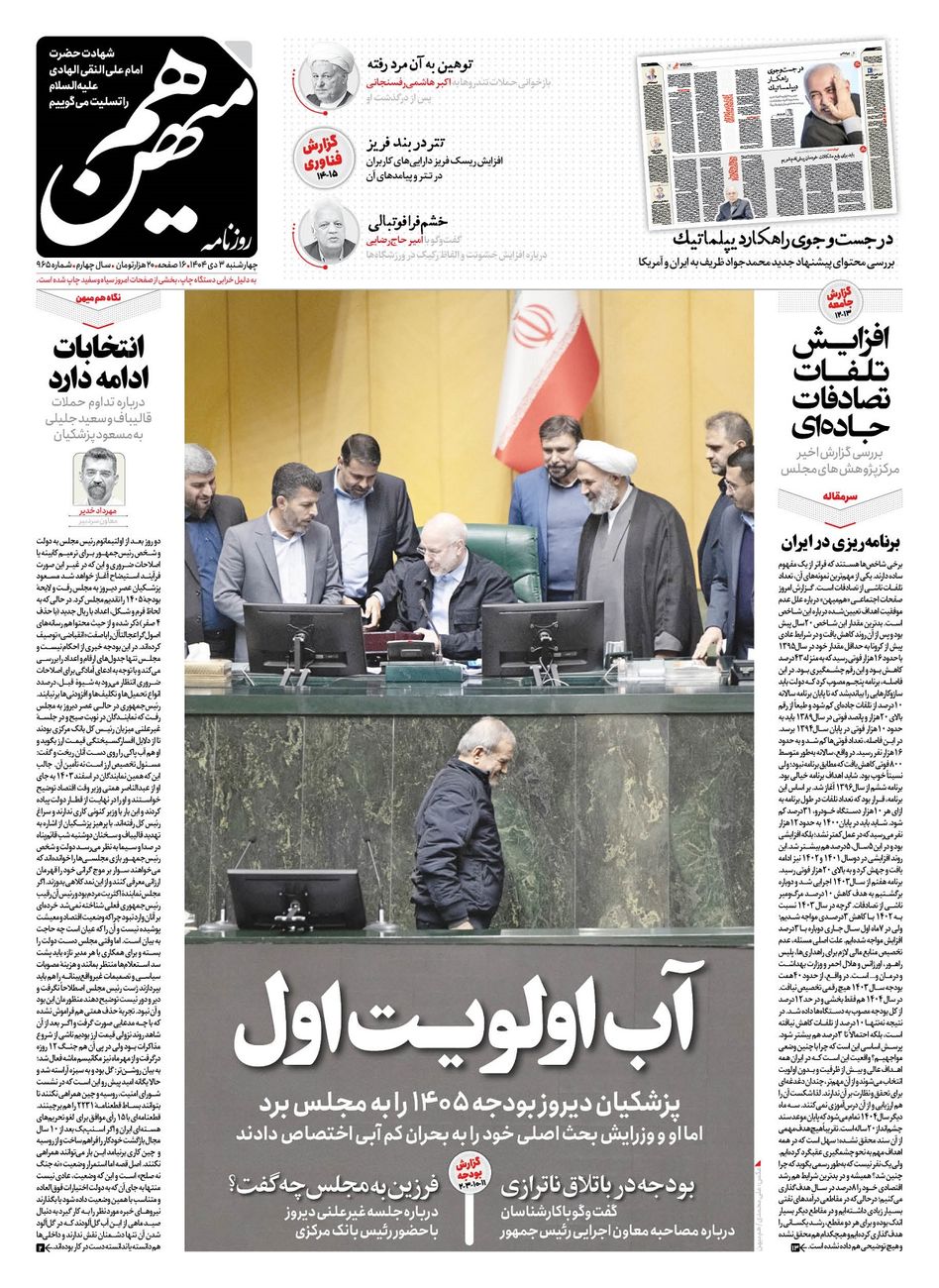 جهت خرید روزنامه هم‌میهن چهارشنبه 1404/10/03 به لینک زیر مراجعه کنید. خرید روزنامه هم‌میهن از سایت جار